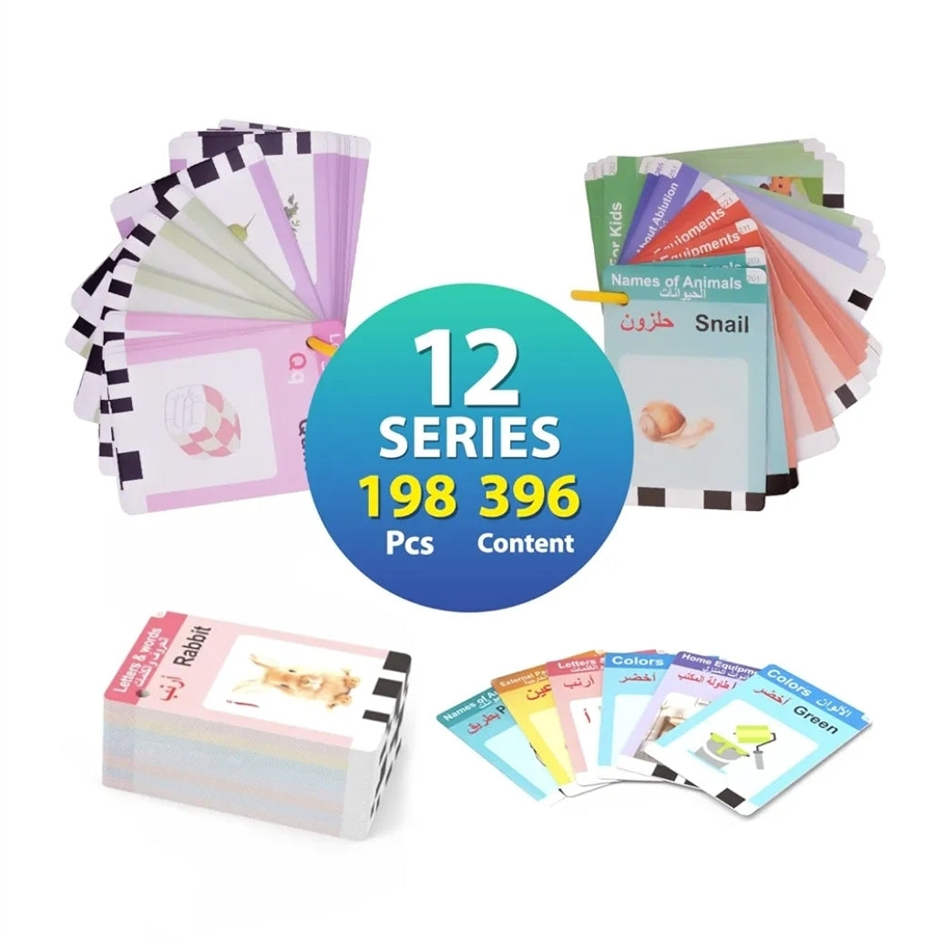 English-Arabic Flash Cards Learning Machine for Toddlers | 198 Cards, 396 Words | Educational Toy for 3-6 Year Old Speech Therapy, Word Games, Early Education
