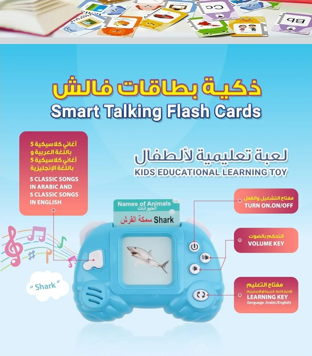 Improve your child's language skills with our English-Arabic Flash Cards Learning Machine. With 198 cards and 396 words, this educational toy is perfect for 3-6 year olds in speech therapy, word games, and early education. Give your child a head start in language development with this fun and engaging learning tool.