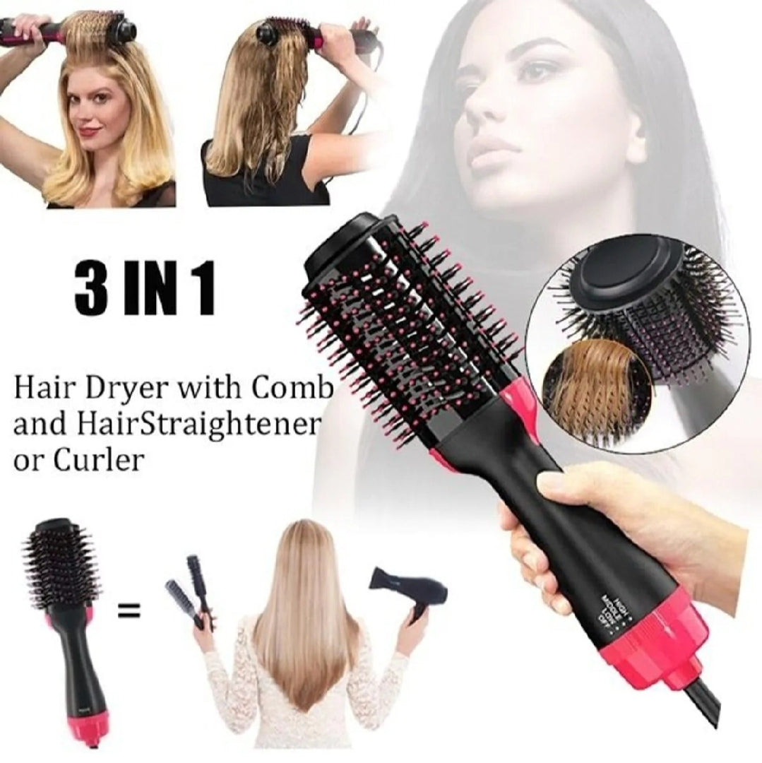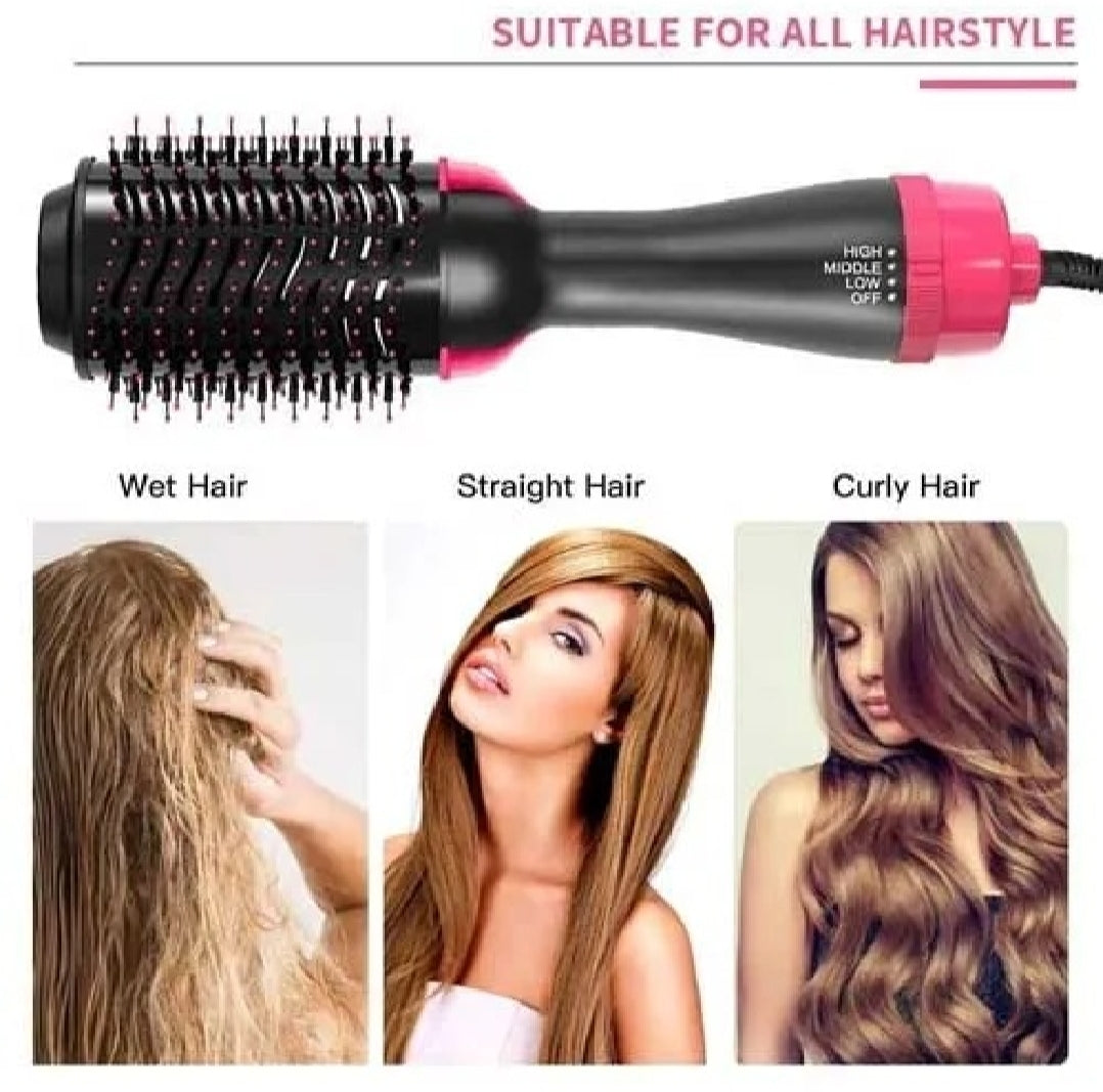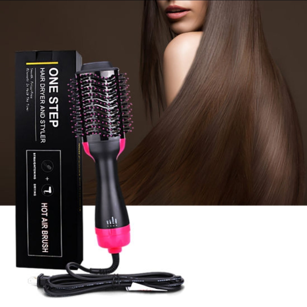Elevate your hair styling game with our One Step Blow Hair Dryer and Volumizer Brush. This versatile Hot Air Brush Hair Styler is designed to simplify your routine, reducing styling time and minimizing damage while delivering exceptional results. With the power of a dryer and the volumizing capabilities of a styler, this brush's unique oval design smoothes your hair while its round edges add volume and bounce, giving you salon-quality results at home. Customize your look with three heat settings (High, Middle, Low) and enjoy the flexibility to straighten or curl your hair as desired. The brush's mixed bristles, including Nylon Pin & Tufted Bristles, make detangling a breeze while providing a secure grip on your hair. For the best outcome, start with towel-dried hair to remove excess moisture, then detangle with a comb before styling section by section. Streamline your hair routine and achieve frizz-free, voluminous, and beautifully styled hair effortlessly with our One Step Blow Hair Dryer and Volumizer Brush.