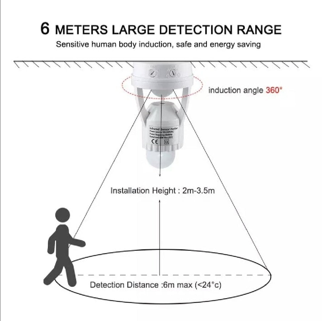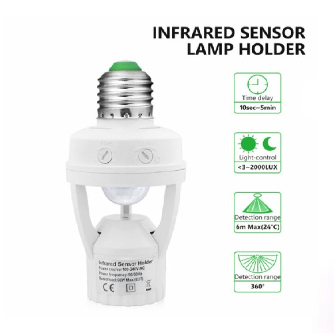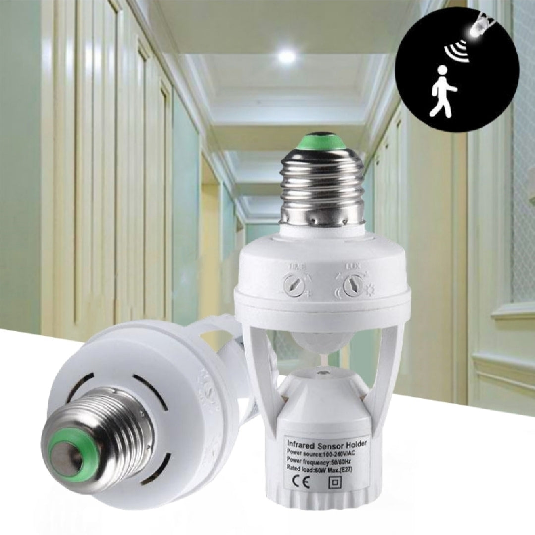 PIR Human Body Motion Sensor LED Lamp with Control Switch Bulb Socket Suitable For E27 Screw Socket Light Bulbs Security Sensor