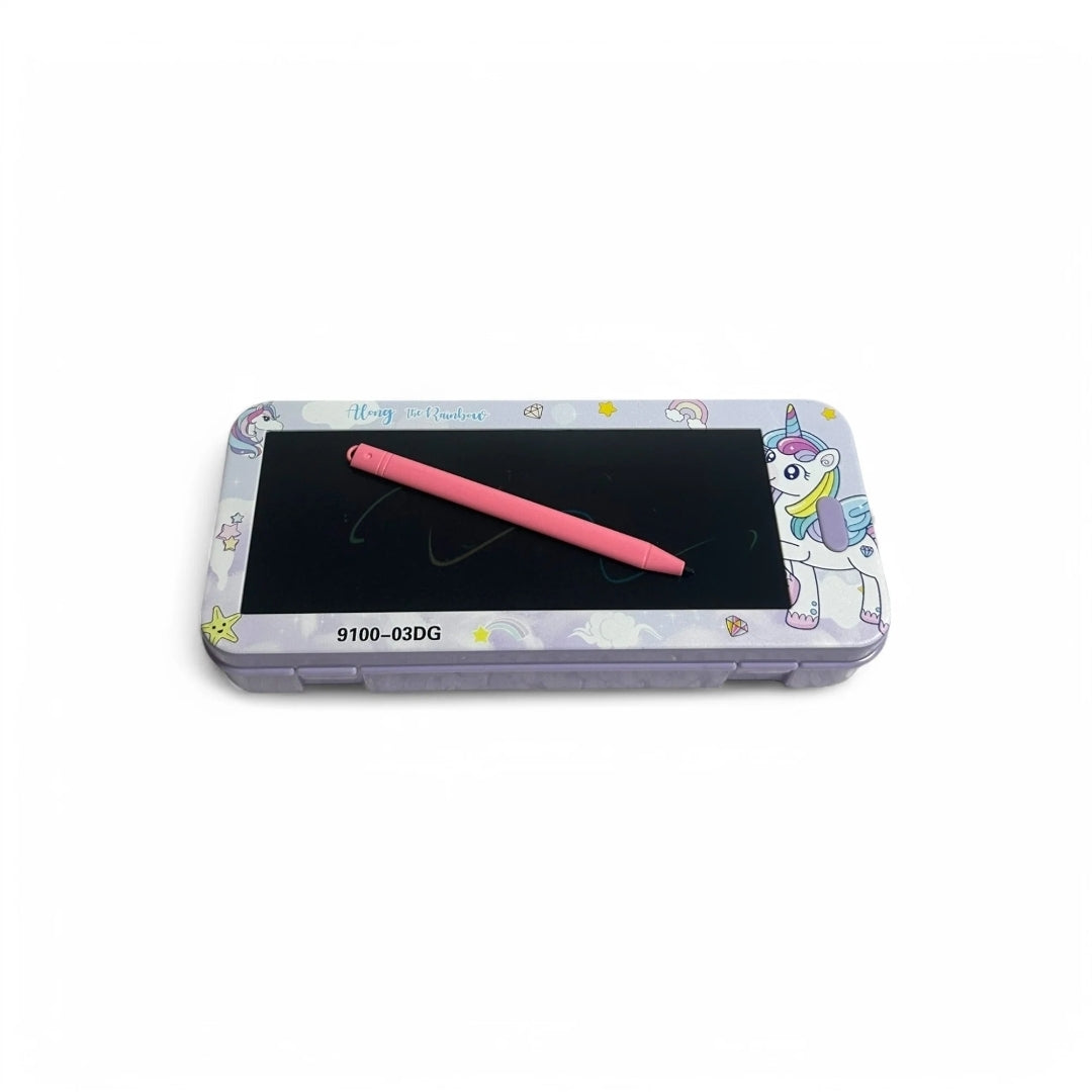 Experience an innovative and eco-friendly writing experience with the Unicorn Clipboard Pencil Case. Its LCD screen ensures a comfortable and paperless writing process, promoting safety and convenience. Say goodbye to mess and hello to efficiency with this must-have writing tool. Get yours today and stay ahead!