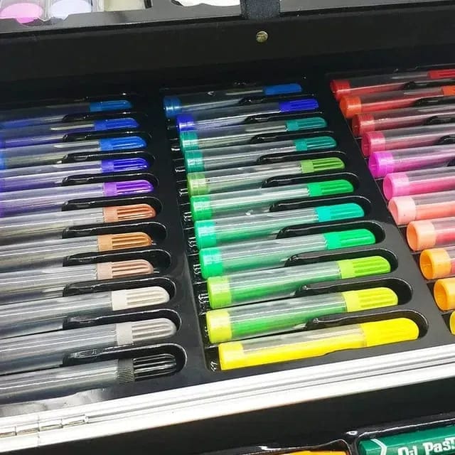 A super artist's kit, with 145 pieces of painting tools, including oil pastels, colored pencils, crayons, watercolor paints, sharpeners and palettes, erasers and other various artistic needs. Your child will get all the materials they need to exercise their creativity.